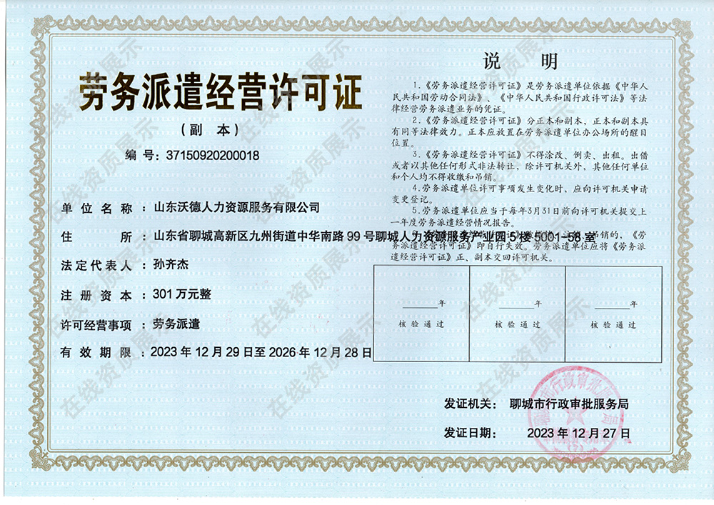 劳务派遣经营许可证