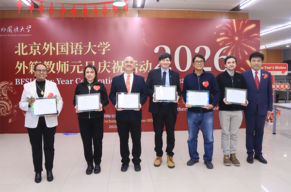 赵刚为在校任教十五周年、十周年以上外籍教师颁发任教荣誉证书。国际中国文化研究院意大利籍教授麦克雷(Michele Ferrero)、欧洲语言文化学院立陶宛籍教师洛卡斯·利伍特凯维奇伍斯(Rokas Liutkevicius)、非洲学院埃塞俄比亚籍副教授辛克耐什·阿塔勒·盖波尔(Sinknesh Atale Gebre)、亚洲学院印度尼西亚籍教师汉迪(Hendy Yuniarto)等作为获奖外籍教师代表发言,分享长期在北外工作的感悟。他们对北外的多元化文化氛围、人才培养和发展成就给予高度认可,并表示过去十余年在北外的工作生活经历令人难忘,很荣幸能够为北外的国际化人才培养与教学科研做出自己的贡献。他们感谢北外长期以来的支持与关怀,让他们感受到国际大家庭的温暖,期待未来进一步参与北外建设与发展,促进中外人文交流与文明互鉴。 活动现场,中外师生还为大家带来了一场精彩纷呈的联欢表演,悠扬的室内乐四重奏、动人的歌曲演唱以及精彩的八段锦表演充分展示了不同文化的魅力。现场的互动游戏更是引得欢笑声不断,中外教师在轻松愉快的氛围中增进了解、加深友谊。 今年活动设置特色环节包饺子,将活动推向高潮。中外师生围坐操作台,共同制作中华传统美食。从擀皮、填馅到捏合,外籍教师们认真学习包饺子技巧,有的饺子形状规整,有的则创意十足,现场欢声笑语此起彼伏。活动尾声,热气腾腾的饺子端上餐桌,大家共同品尝亲手制作的饺子,交流各自国家的新年习俗,现场其乐融融。最后的幸运抽奖环节更是惊喜连连,为新年添好运、送祝福。 活动现场还设置了中国传统书法体验环节,并邀请了北京大学校友书画协会副会长龙红放作为指导老师,指导外籍教师及家属沉浸式体验中国传统书法的魅力。整场活动在温馨喜庆的氛围中落下帷幕,中外师生共同庆祝新年的到来。 国际交流与合作处处长和静、非洲学院院长李洪峰、国际中国文化研究院院长高金萍、欧洲语言文化学院党总支副书记董希骁等参加活动。 北京外国语大学举行外籍教师新年庆祝活动 |