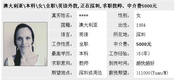 外教编号:wj24878732 澳大利亚女外教,全职深圳周边工作