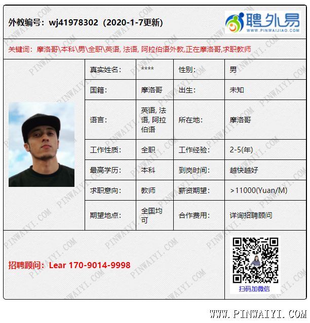 大家好!相信大家对我们的外教都很感兴趣,想要更深一步的了解我们的外教学历和个人情况,那么小编就来满足你们的愿望啦,我会每天都为大家推荐一些优质的外教,每天哦!有需要的老师要多多关注专题频道,相信总有一个外教适合你的学校!话不多说,开始推荐! 俄罗斯, 本科, 英语专业, tesol , 在中山 有经验, 求职中山职位。 也有工作签证资料 格鲁吉亚, 在本国, 工签资料齐全,有经验,有推荐信, 全部资料都有, 求职可以办理工作签的学校。 南非长大,本科,现于青岛,学生签,求职山东城市,立刻到 本科,有tefl,有工作经验,求职地点不限制,工签一周备好,12k 本科, 有教学经验,发音好,求职小学,资料已备好 以上就是今天小编推荐的外教啦! 如果没有您看上的,可以打开我们的外教库,有海量外教供您选择! 您也可以直接发送招聘需求给我们,我们会根据您的要求为您精心挑选外教! |