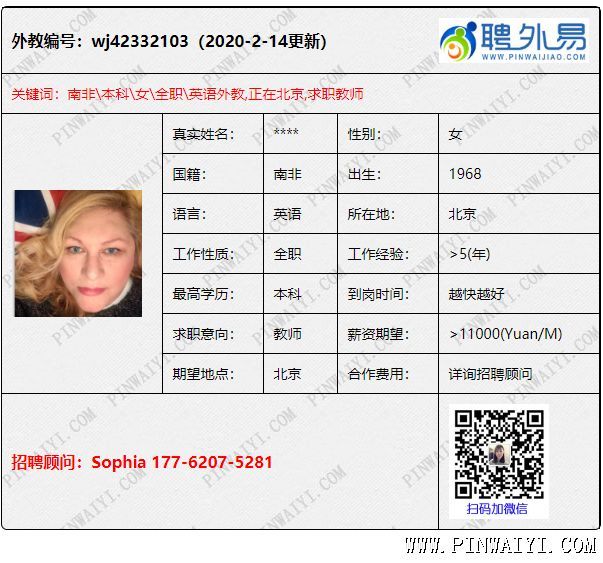 很多外国人暂时离开了,但是也有很多外国人选择留在中国跟中国人一起战胜困难,等待学校的开学。更充分表明了对中国战胜病毒实力的信任。 近期求职的外教: