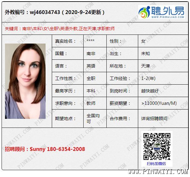 外教招聘快讯:每日外教推荐2020年9月25日 本科外教,自理商务签(2021.12.05到期),目前在深圳,求职深圳外教 南非外教,5年以上工作经验,正在本国 菲律宾外教,居留许可2020.6.30过期,有经验,有Tesol工签,新的无犯罪认证中,求职幼儿园、小学和培训,除去郑州和河南,其它城市都可以,薪资10-12K 巴基斯坦外教,1-2年工作经验,正在武汉,求职武汉外教 土耳其外教,1-2年工作经验,正在杭州,求职北京外教 菲律宾外教,1-2年工作经验,正在杭州,工签资料全 , 求职地不限 俄罗斯外教,1-2年工作经验,工签资料齐全 南非外教,1-2年工作经验,正在天津,签证自理,求职地点不限 (编辑:Lisa) |