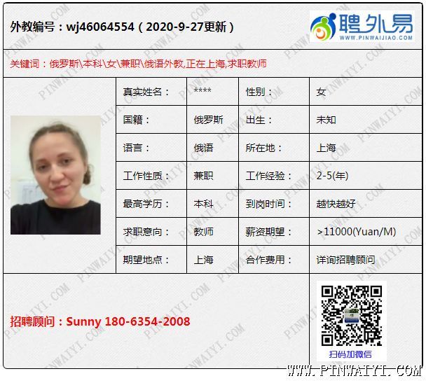 外教招聘快讯:每日外教推荐2020年9月28日 美国外教,硕士外教,5年以上工作经验,求职地点可协商,目前在美国 俄罗斯外教,本科外教,工签到2022年,目前在临沂,求职幼儿园(周一周二全天,周三到周五下午4点及之前都可以) 俄罗斯外教,工签到2021.08,发音好,目前在上海,求职上海幼儿园(周一周二全天,周三到周五4点之前都可以) 白俄罗斯外教,tefl,工签刚过期2天,求职上海 英国外教,课程与教学博士,可以教高中任何学科,做过22年校长,求职最好义乌 本科外教,1-2年教学经验,工签自理,全国各地均可 英语外教,1-2年工作经验,正在武汉,求职武汉外教 本科外教,TEFL,工签资料准备中,有教学经验,现在在印度尼西亚,求职苏州,20k (编辑:Lisa) |