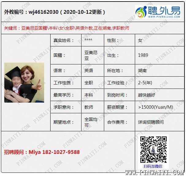亚美尼亚外教,双本科英语+音乐专业 ,工签转聘(12月底转聘)可以教音乐