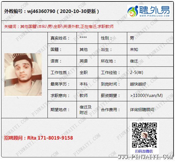 外教招聘快讯:每日外教推荐2020年10月31日 英语本科,有TEFL,去年拿到了工签,形象和性格都不错,口音非常好 外教有大概五年的教学经验,口音还不错,形象也不错,契约精神很好 加纳外教,1-2年工作经验,正在苏州,求职苏州及附近职位 意大利外教,在昆明,转聘,确定工作就可以解聘,想求职大点孩子,西安或者成都优先 华南理工硕士,经验2年以上,在广州 经济类工签自理,求职广州工作,薪资协商 在青岛,学生签到2021.7,求职山东职位,现在不需要上课,经验很丰富 加纳外教,数学本科,有经验,正在保定,本周完成合同,下周到甘肃,大学在甘肃, 学生签到2021.3,求职不限制城市,合同完成度高 经验多,正在义乌,工作签证,可以自理,求职义乌附近职位,薪资协商 (编辑:Lisa) |
