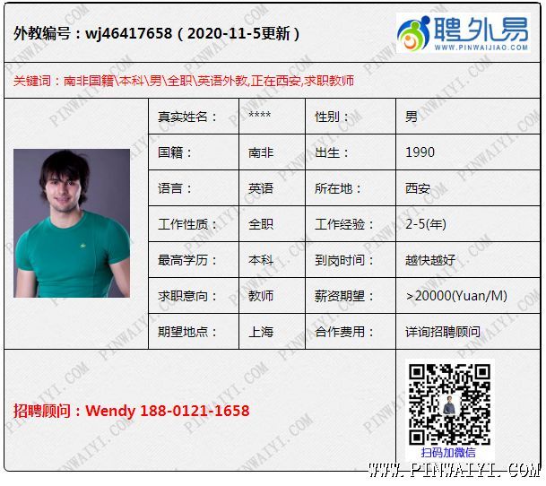 外教有多年的工作经验,口音好,可以教体育、英语等,在西安,求职上海