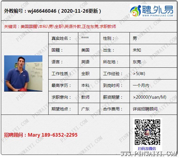 埃及男,本科,求职下午兼职和周末全天或者培训机构工作,目前在广州