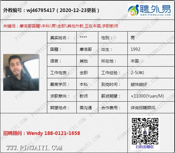 摩洛哥男,英语语言专业本科,tefl,求职地点不限