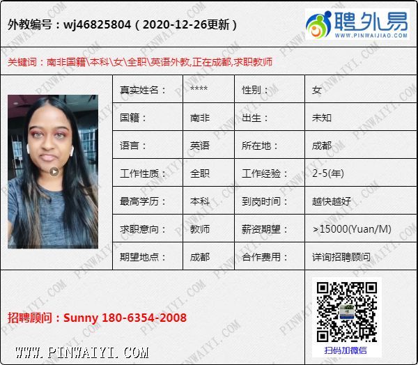 本科外教,有教学经验,有TESOL,性格不错,形象也不错