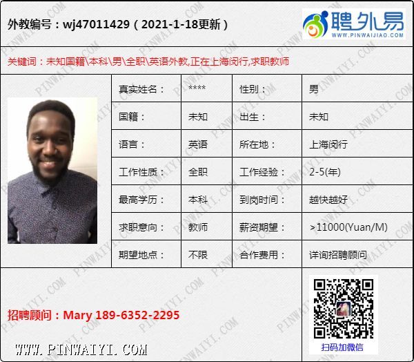 本科外教,性格活泼开朗,现在武汉,求职地不限制