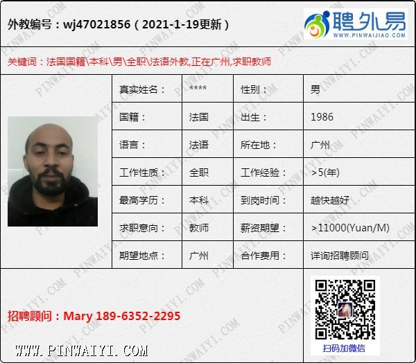 外教招聘快讯:每日外教推荐2021年1月20日