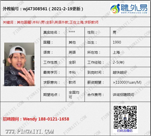 外教招聘快讯:每日外教推荐2021年2月20日
