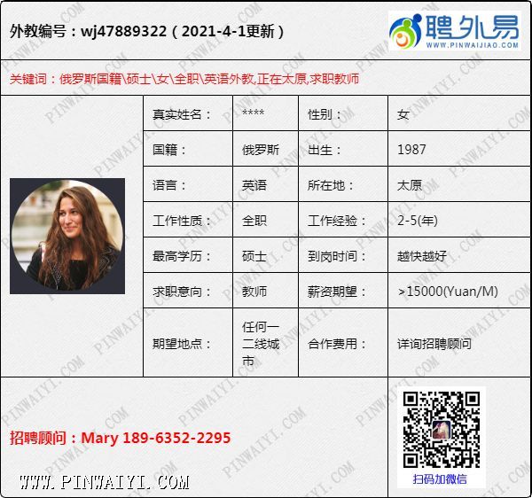 俄罗斯外教,外教形象挺好,有很丰富的教学经验,在青岛,求职深圳