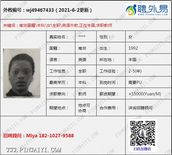 外教招聘快讯:每日外教推荐2021年6月3日
