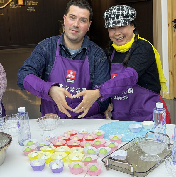 文章来源:浙江在线 外国老师遇见宁波汤圆:“米道交关好” “包汤圆的感觉就像在完成一件艺术品,从揉粉到包馅,每一步都需要耐心和技巧。”来自英国的宁波至诚学校外教Owain手持刚完成的汤圆,兴奋地向同伴展示。近日,宁波至诚学校组织外籍教师(外籍人才)走进宁波三雪食品有限公司汤圆体验馆,与江北区洪塘街道鸿盛社区居民一起通过亲手制作汤圆,深度体验中国传统美食文化的独特魅力。
